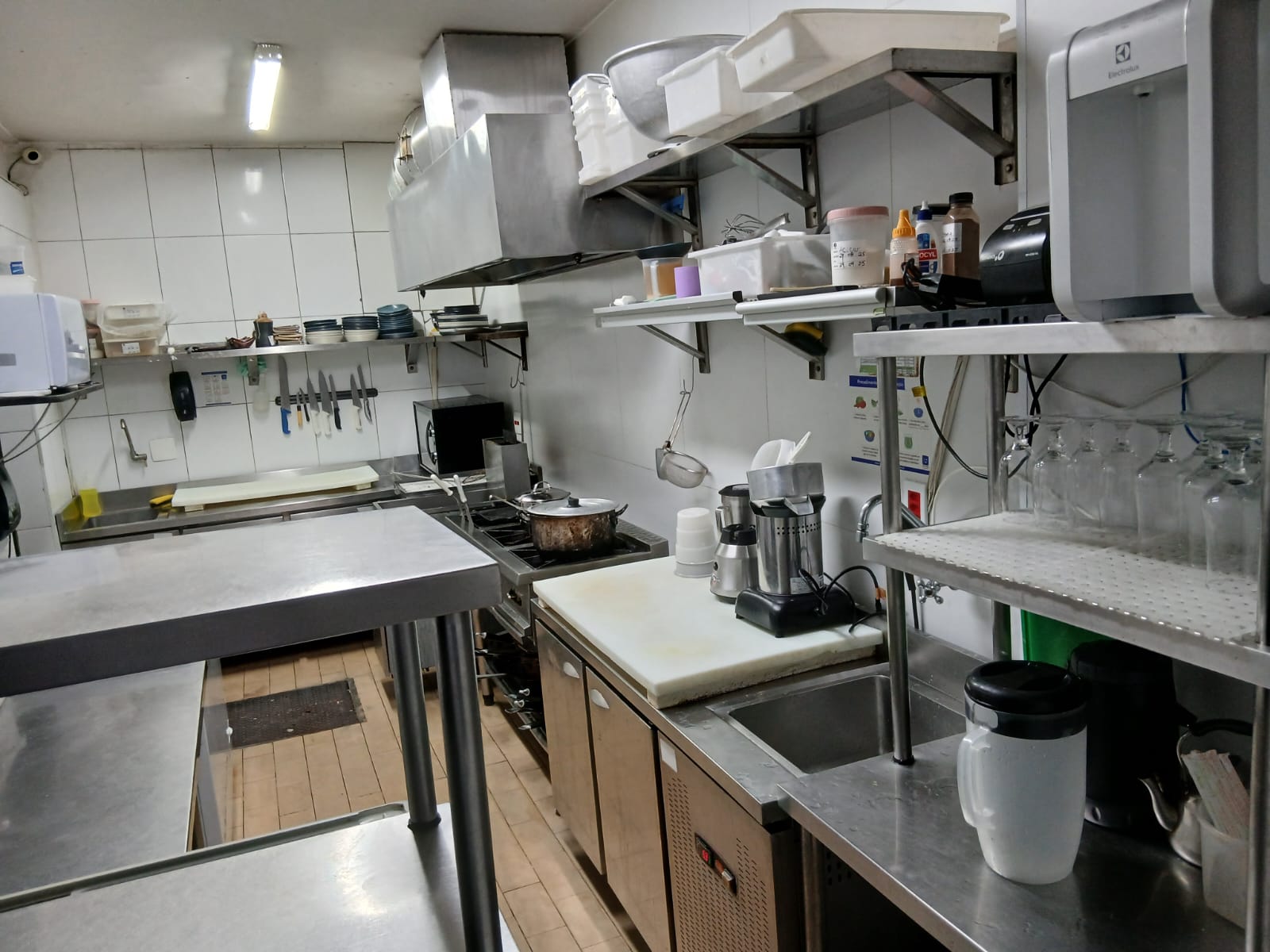 O local possui 4 geladeiras de bancada, 3 cervejeiras, 1 freezer de porta dupla, 1 geladeira de porta dupla e mais 1 freezer e uma gladeira de uma porta. Possuim também fogão e forno industrial com coifa, 1 fritadeira a gás, 1 fritadeira elétrica e 2 microondas.