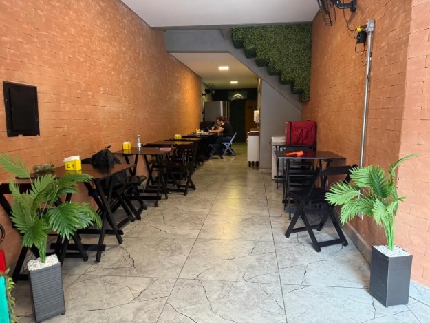 São 500 m² com estrutura completa pronta para uso. Ponto movimentado ao lado das maiores igrejas do Brás (São Paulo capital). Ponto de ônibus em frente. Espaço com som e TV. Calçada ampla que permite pôr mesas. Propício para delivery, happy hour e música ao vivo. Dispõe de forno para pizza e churrasqueira profissional conforme fotos. Disponível para almoço, jantar e café da manhã..